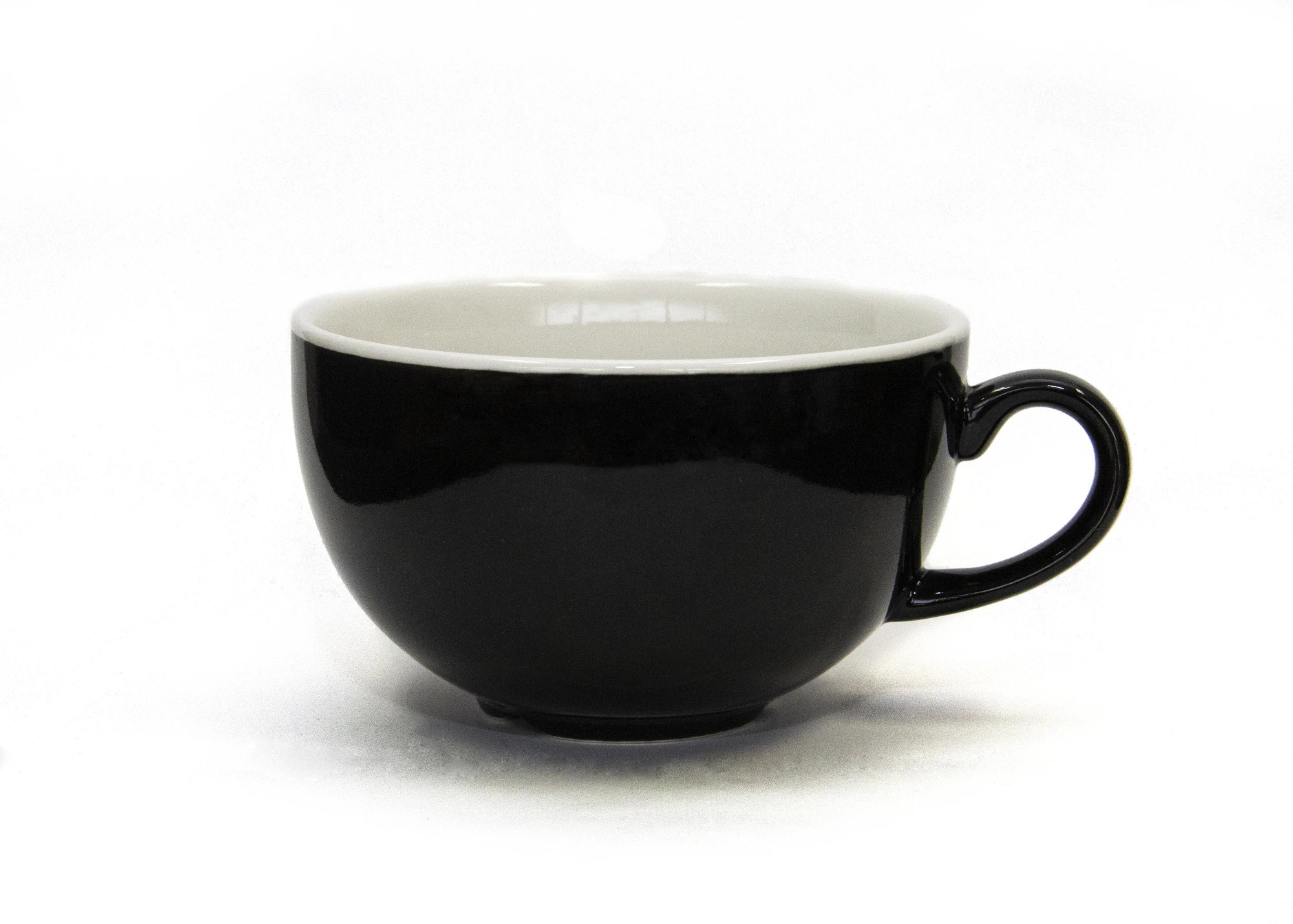 11 oz Noir Cappuccino mug is a two tone mug and has a glossy black exterior and white interior.