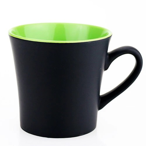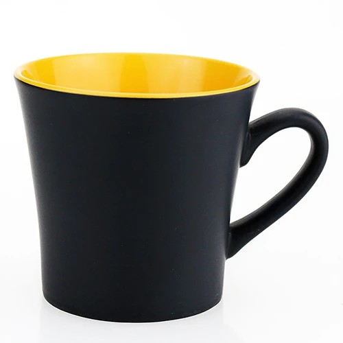 12oz. Veneto has a matte black exterior with short funnel form with a colour interior. The imprint size for this product is 2″ x 2″.