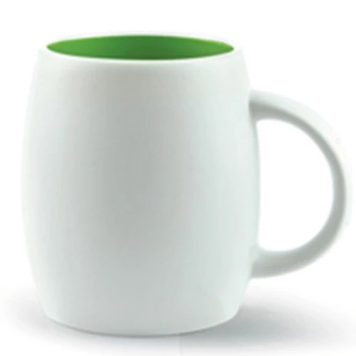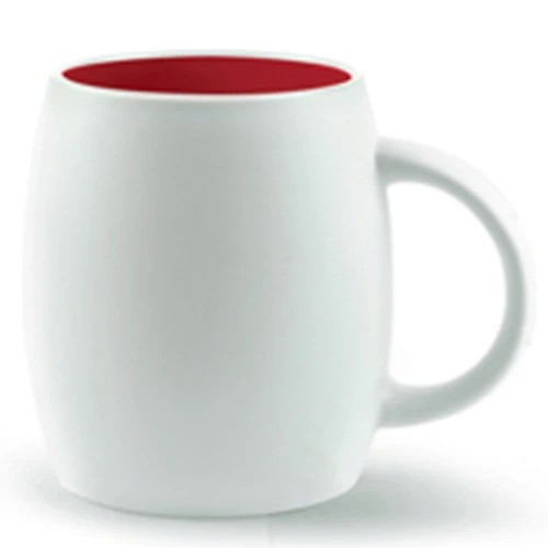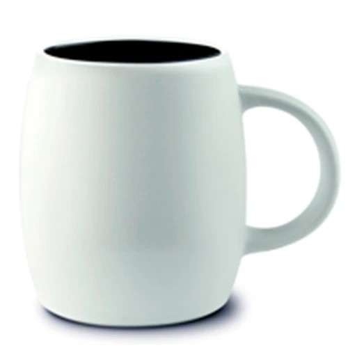 14oz. barrel-like mug is a uniquely shaped white matte mug with a coloured interior.