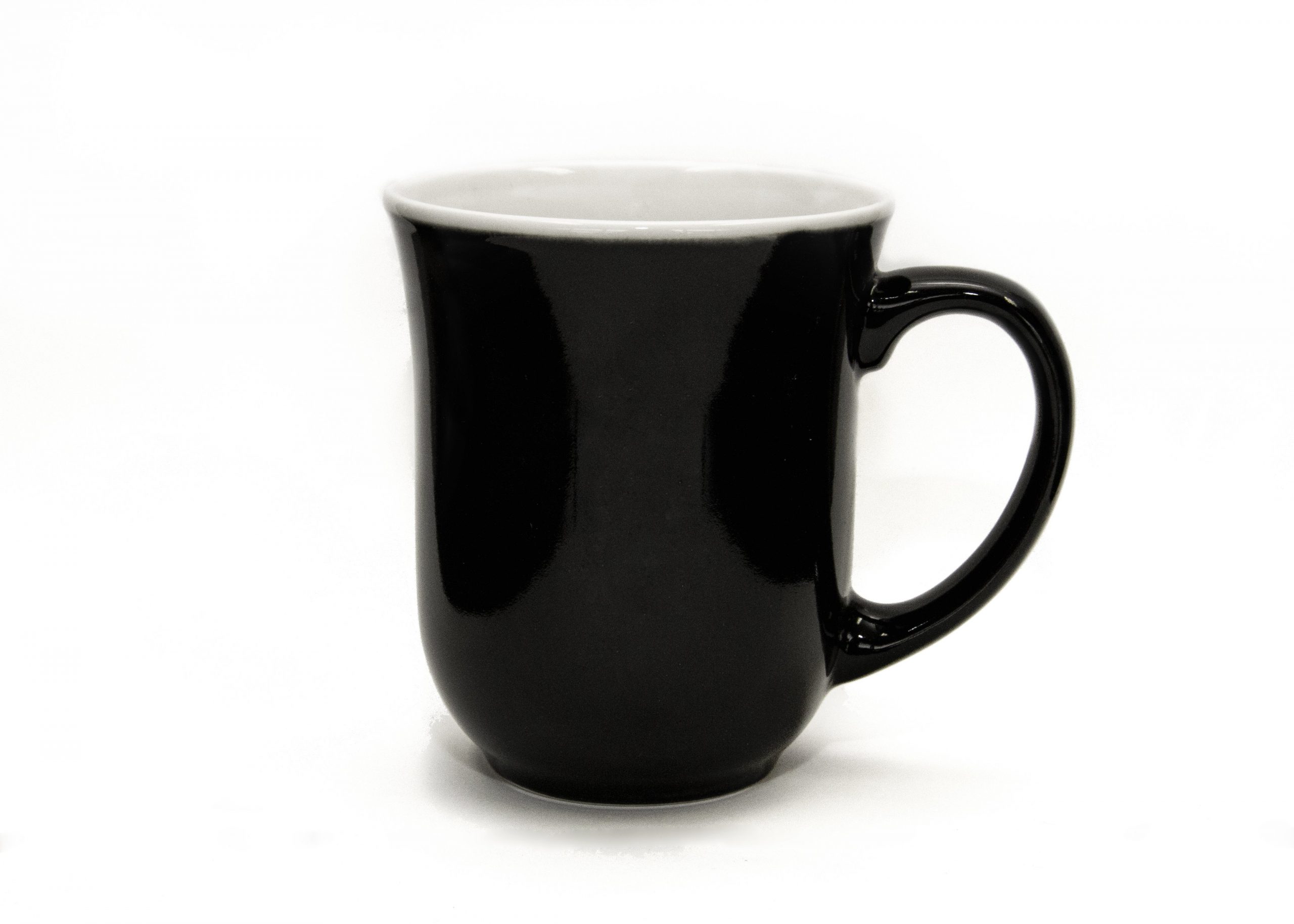 9.5 oz Noir Elegant mug is a two tone mug and has a glossy black exterior and white interior.