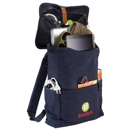 The Alternative® Mid 15″ Cotton Computer Backpack moves you through the world in a different way. Creating products people want to use every day; Alternative represents quality materials, durable construction and design clarity. This rucksack combines a clean and understated exterior with function. The heavyweight 16oz canvas is paired with genuine leather accents to give it a modern and refined look. Padded computer compartment holds up to 15.6 inch laptops along with your iPad® or tablet. Cushioned shoulder straps and exterior slash pockets with custom striped cotton lining provides a premium look and feel.