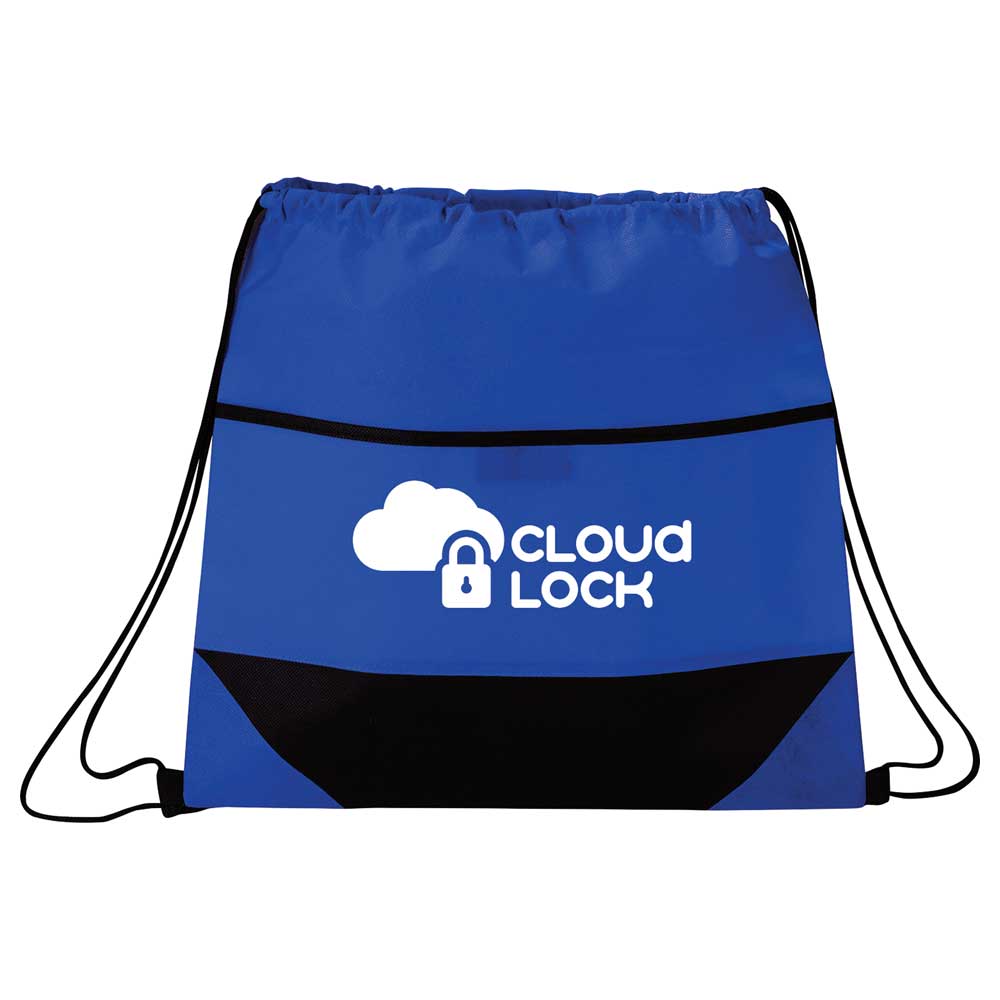 The Angles Non-Woven Drawstring Bag is Kid Friendly and has an open main compartment with a cinching rope closure.