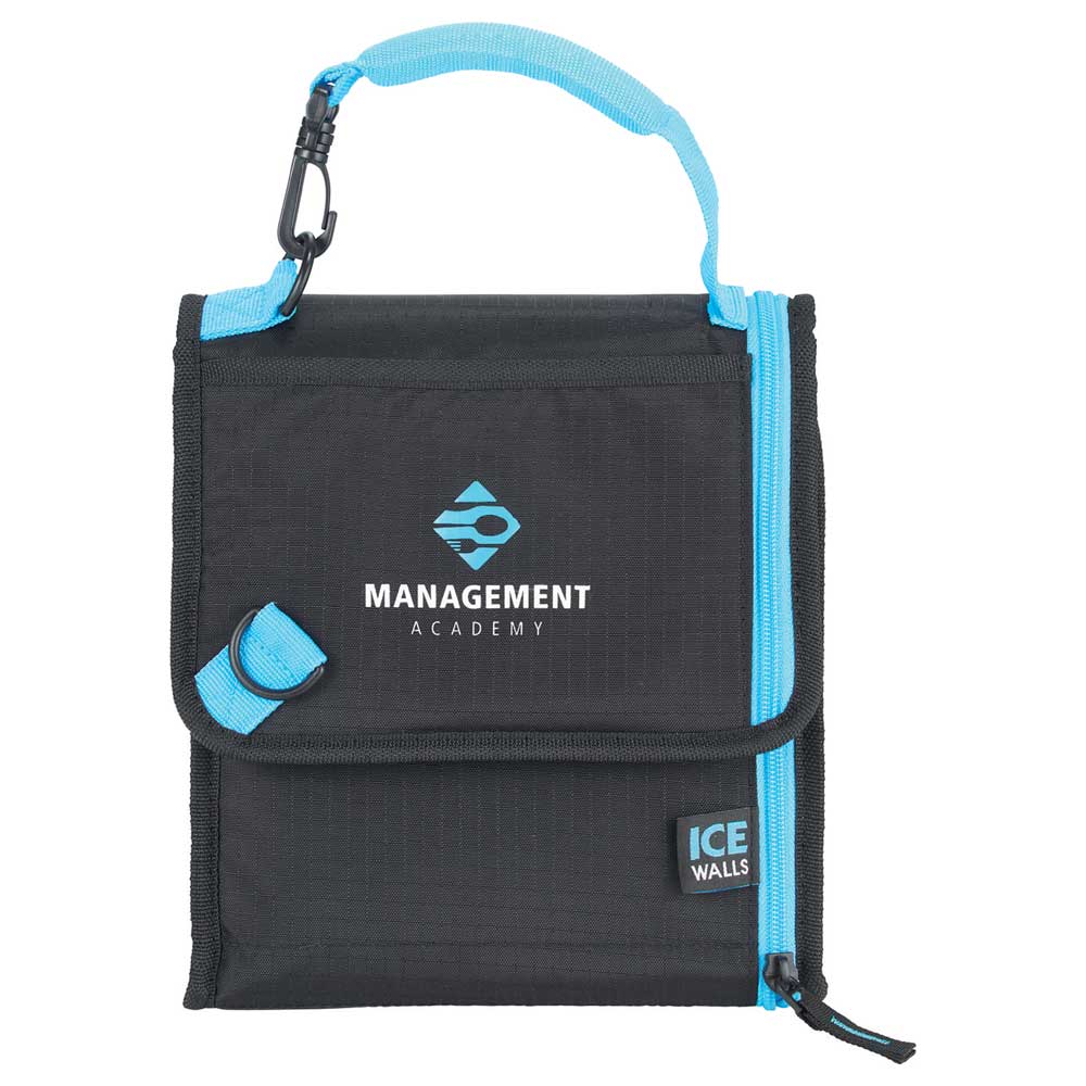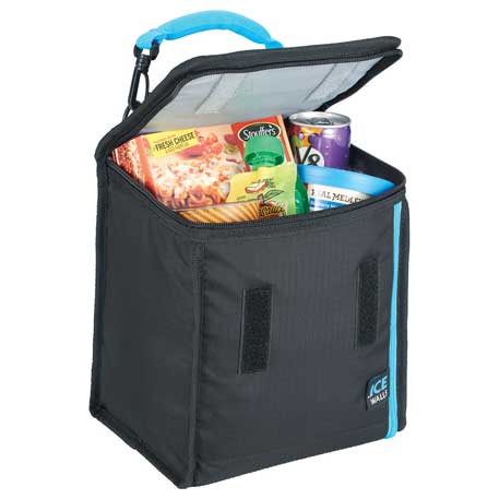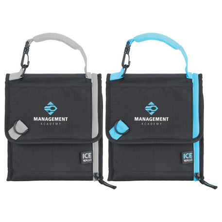 This innovative lunch cooler includes four removable, reusable ice packs that slide into the walls of the cooler. Main compartment folds over or can be zippered for a larger storage area. Padded carry handle with attachable Swing Clip™. Ultra Safe™ leak-proof, easy clean PEVA lining. Note: BK sku includes blue color pop and BKG sku includes gray color pop.
