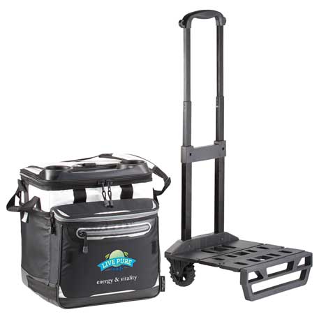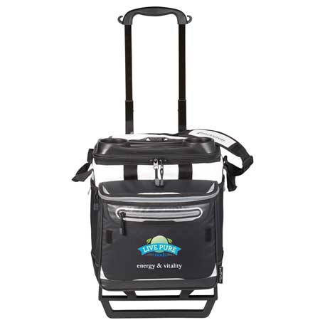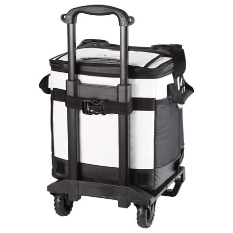 Made with Deep Freeze® high performance insulation, an integrated heat barrier and Cold Block™ base help keep still ice for 3 days! Main compartment plus front pocket hold up to 58 cans. Easy access lid, beverage station and all terrain cart with retracted, telescopic handles make this the ultimate cooler for any event.