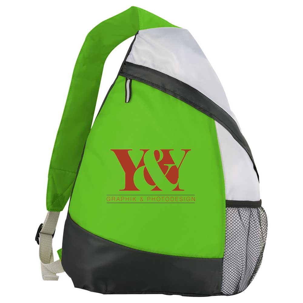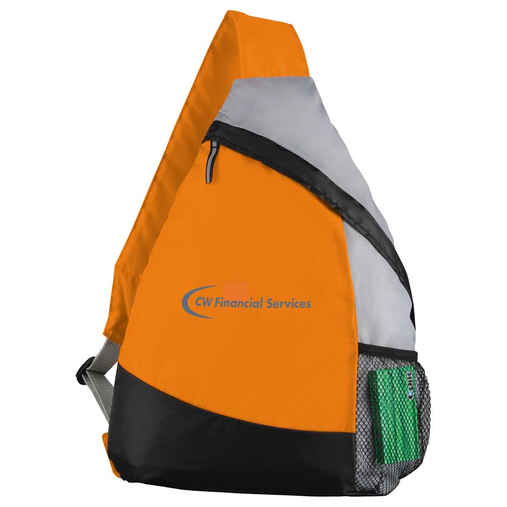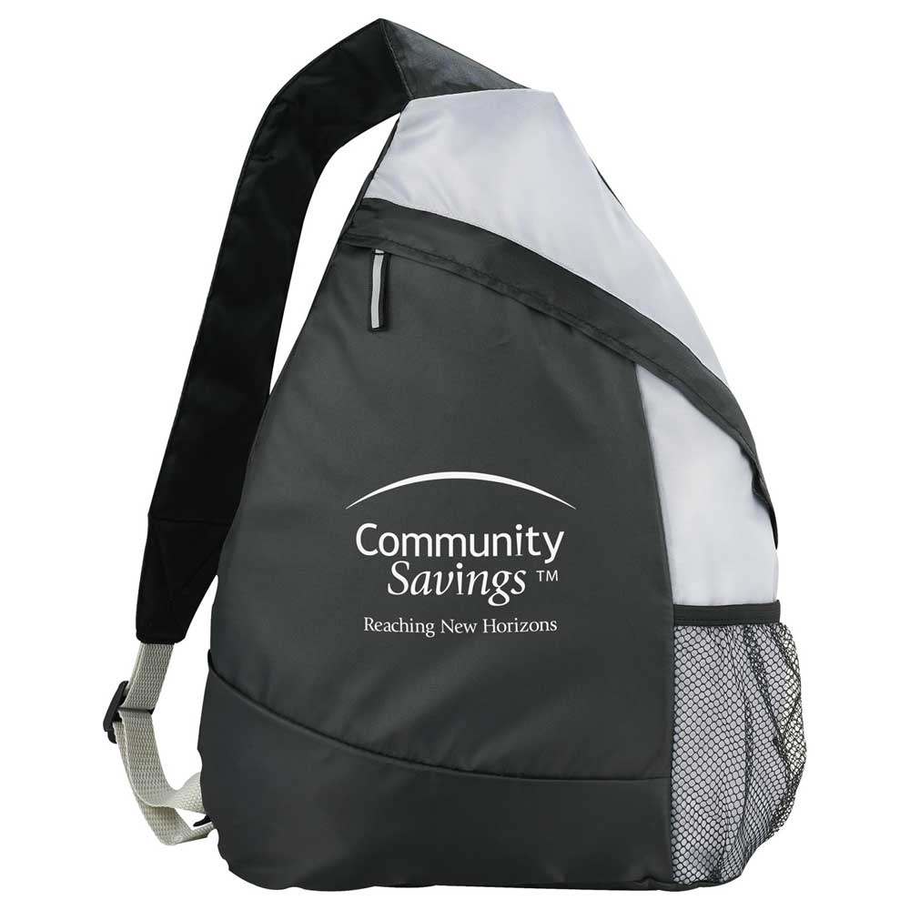 The Armada Sling Backpack features a zippered main compartment with a stylish, reflective accent zipper pull. A side mesh pocket provides extra storage while the adjustable, reinforced padded shoulder strap allows you to carry in comfort.