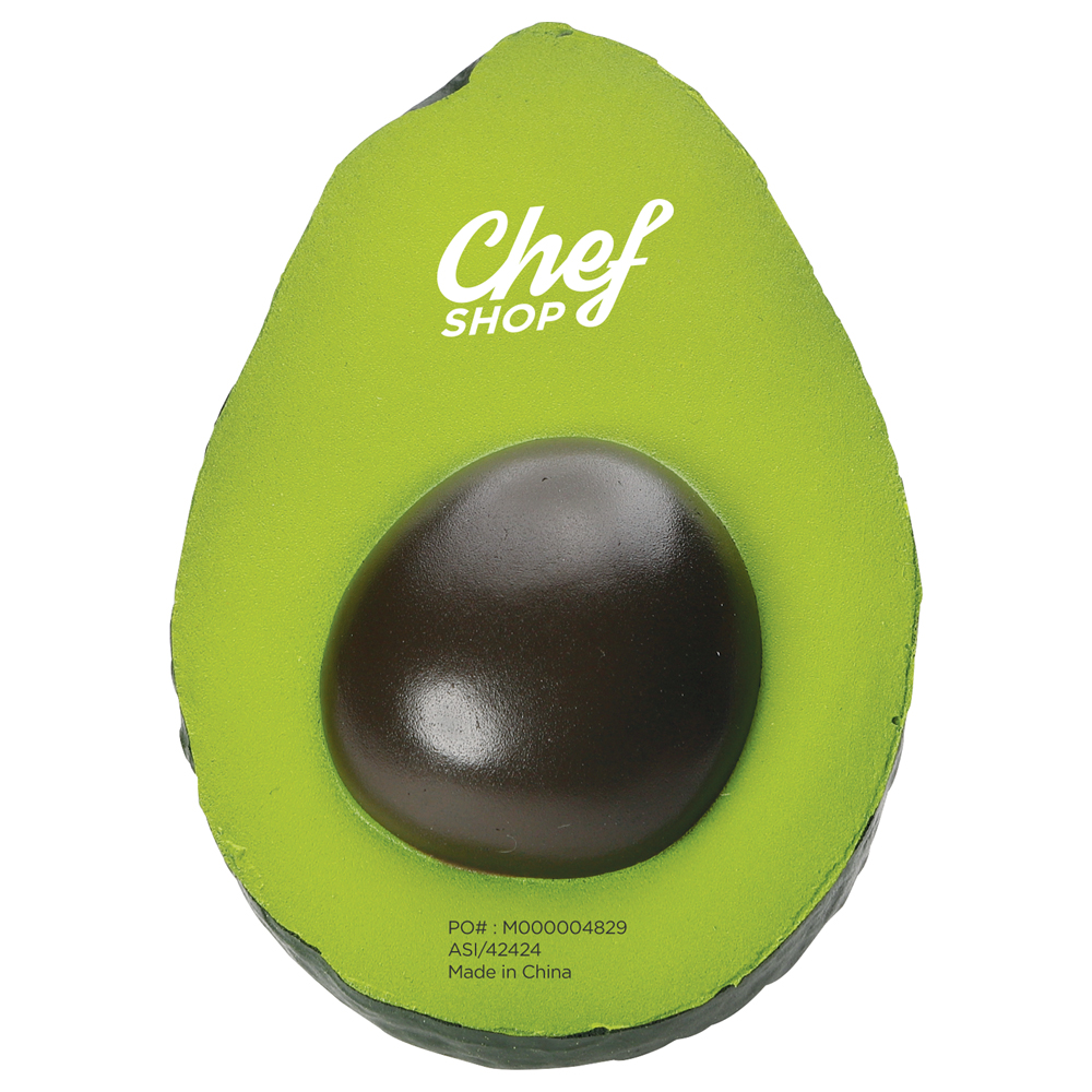 The Avocado Stress Reliever is a polyurethane, squeezable foam with slow reaction feature. Once compressed, it takes 5 seconds to retain the original shape. The stress relievers can vary in color, size, texture and density. Although every effort is made for imprint consistency, we cannot guarantee a uniform imprint on each piece. No half-tones. These products are not intended for use by children under the age of 13.