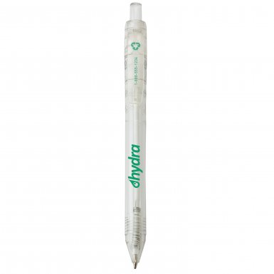 Recycled plastic push-action pen with a recycled symbol printed on clip