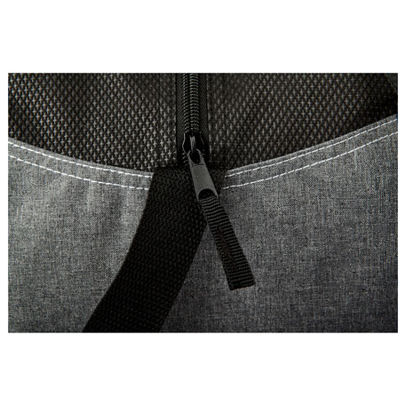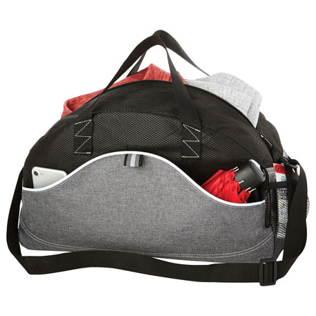 Main zippered compartment. Front main pocket and pen loop. Side mesh water bottle pocket. Permanent, adjustable shoulder strap. Two carry handles. Disclaimer: There may be minor variations in color of the actual product due to the nature of the fabric dyes, weaves and printing.