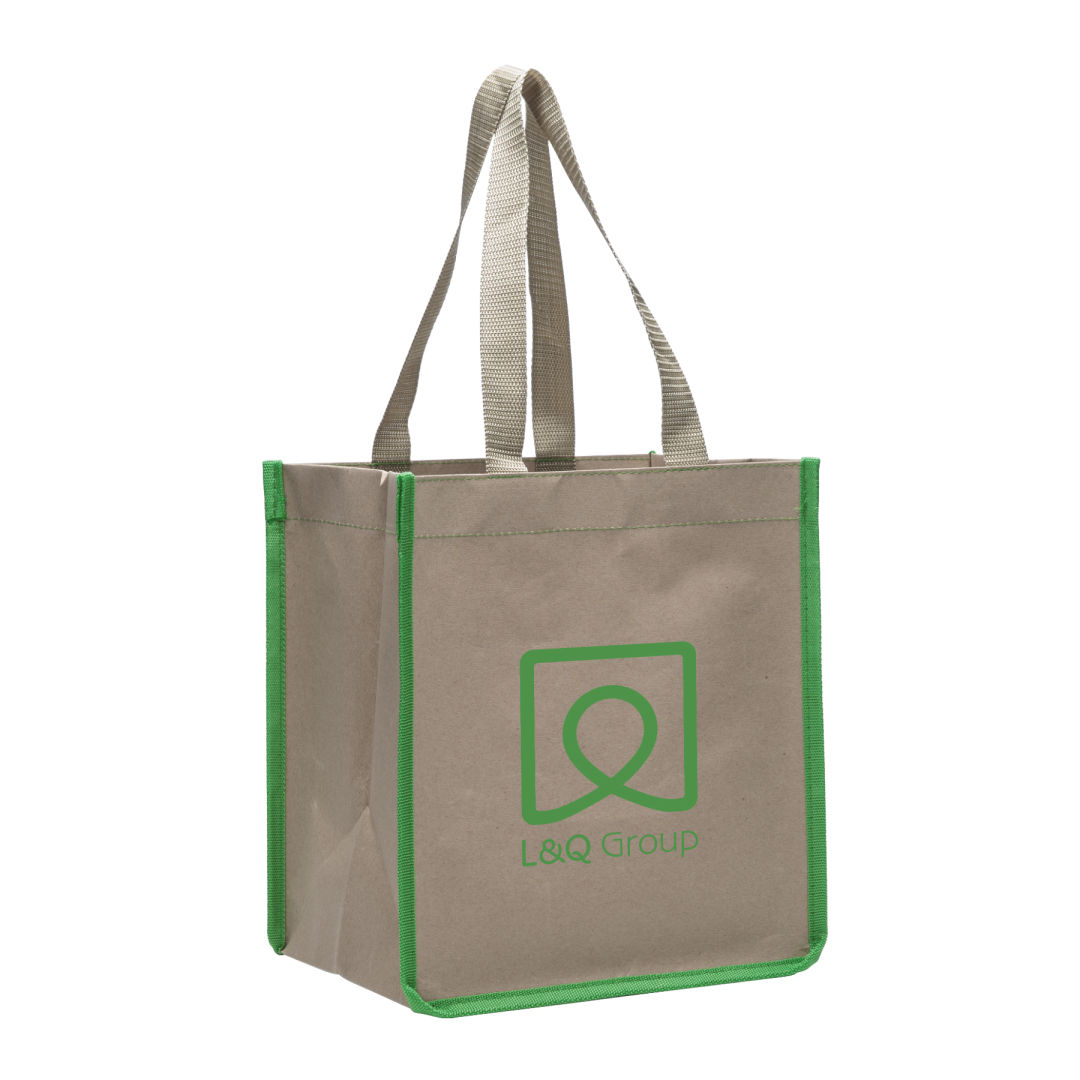 The Bramley Kraft tote bag is the perfect carryall tote bag for groceries, shopping, or running errands. Made from durable kraft paper laminated with an 80G non-woven fabric for maximum durability and longevity.