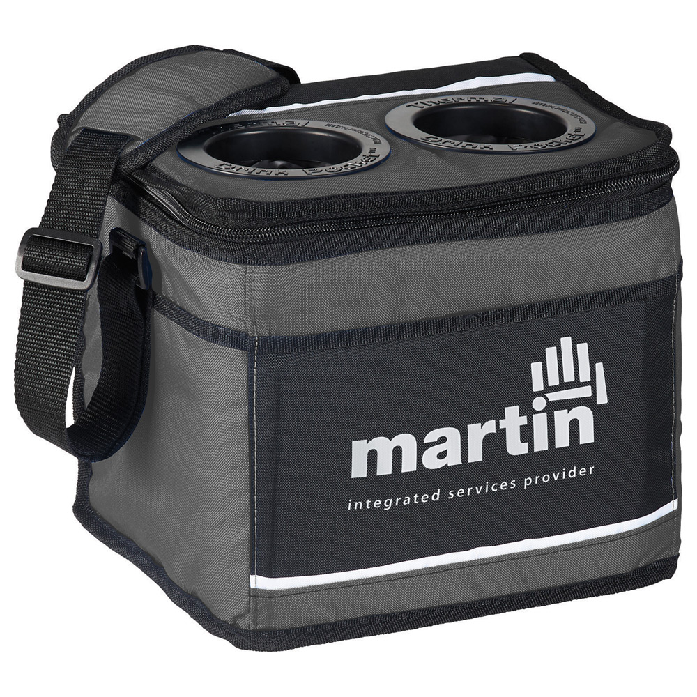 Zippered main compartment holds up to 12 cans plus ice.Thermal Drink Pockets™ on top of cooler for open beverage storage. Front pocket. Adjustable shoulder strap with shoulder pad. Ultra Safe™ leak-proof, easy clean PEVA lining. Collapses for easy storage.
