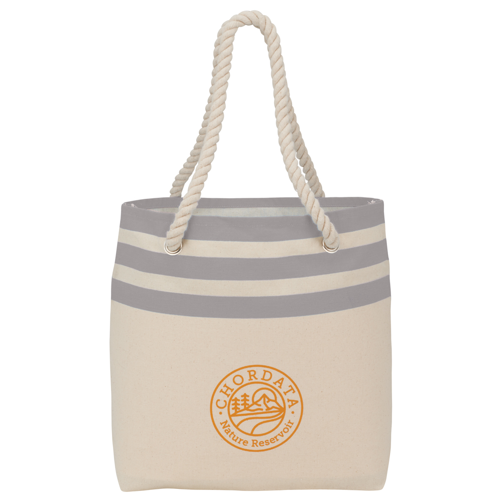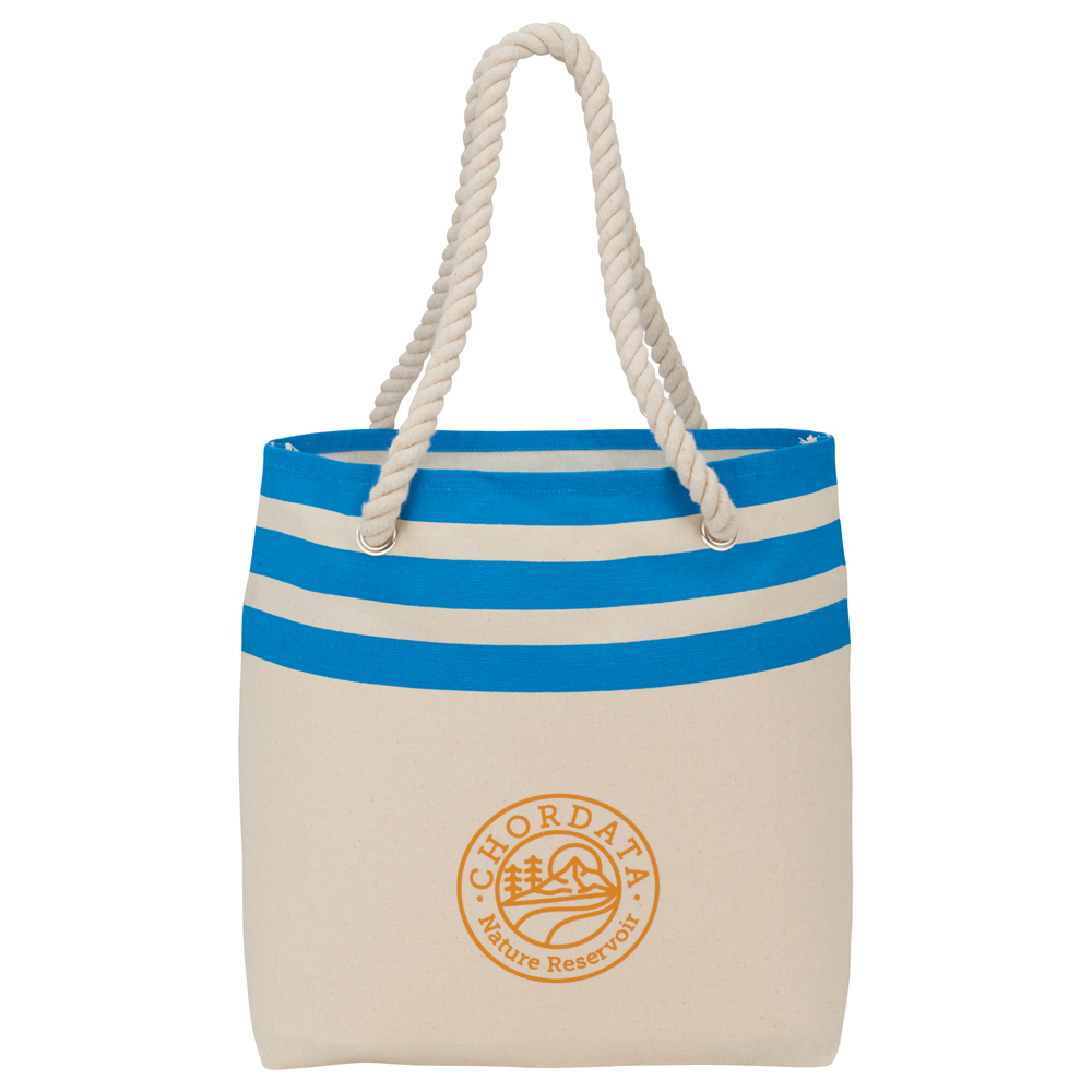 The Capri Stripe Junior 8oz Cotton Canvas Rope Tote is the smaller version of a Leeds classic tote. This cotton tote features rope handles with an 8.5 drop handle and makes a great alternative to plastic bags.