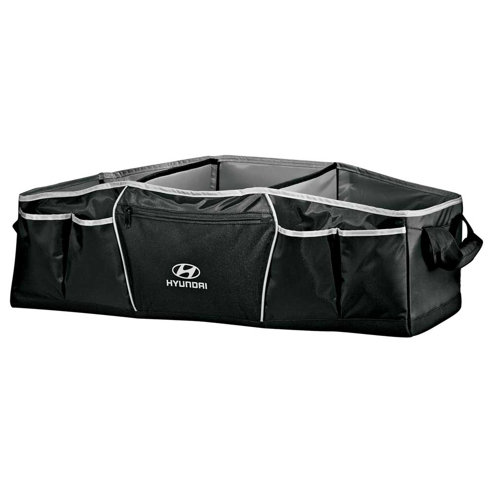Combination cooler and trunk organizer is perfect for transporting groceries and keeping your car clean. Trunk organizer features three large sections. Multiple exterior gusseted pockets for additional storage. Comfort-grip handles. Removable cooler has a zippered main compartment, padded carry handle and insulated PEVA lining. All pieces fold flat for easy storage.
