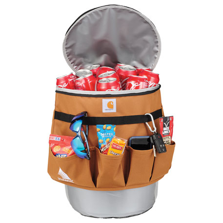 Just a bucket? Not with the Carhartt 5 Gallon Bucket Cooler. This cooler will turn any standard 5 gallon bucket into a sturdy 24 can cooler complete with internal insulation and 4 additional exterior pouches for even more beverages. And when this cooler goes to the next tailgating party or cook out it has plenty of pockets and loops to store grilling accessories, bottle openers and everything else that is needed. Additional Details: YKK zippers, Carhartt logo patch. Carhartt Work Bags, Packs & Gear – as developed and sold by 5 Horizons Group, LLC – are covered by a Limited Warranty against manufacturing defects in materials and worksmanship for the normal life of the product.