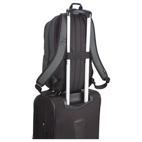 The Case Logic ERA 15” Computer Backpack is a professional laptop backpack, perfect for those who like to balance comfort and style. The spacious main compartment features a thickly padded storage for a laptop up to 15.6″ and dedicated slip pocket for a 10.5″ tablet. There is an additional compartment with organization panel and volume for power brick storage as well as a quick access front pocket with organization for small electronics. Two side pockets give easy access to water bottles or go-to items. The back luggage strap securely attaches bag to most rolling luggage. Heathered material, copper touch points and trim details create a modern professional look.