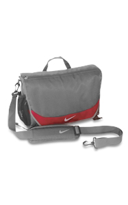Body: 80% Polyester / 20% Nylon. Lining: 100% Polyester. Swoosh: Welded lower main front panel, strap. Durable woven nylon/ poly material. 9 functional pockets – including external zippered pocket, water bottle sleeve and laptop sleeve. Tactile shoulder strap to reduce slipping. 11”W x 12”H x 4.5 ”D