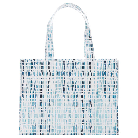 Perfect alternative to plastic bags. Open main compartment. Laminated material is water-resistant and easily wipes clean. 10″ drop handles.