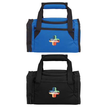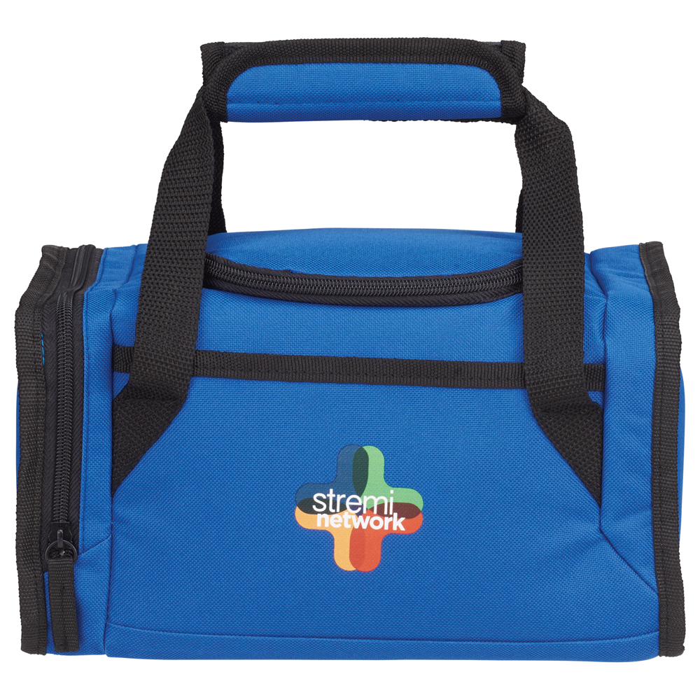 The Duffel Bag 6 Can Cooler sports a trendy shape and can hold up to 6 cans. This cooler features PEVA lining, a padded top grab handle, a zippered side pocket and an internal ID pocket for easy identification.
