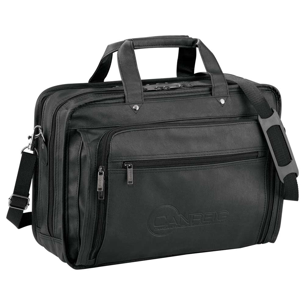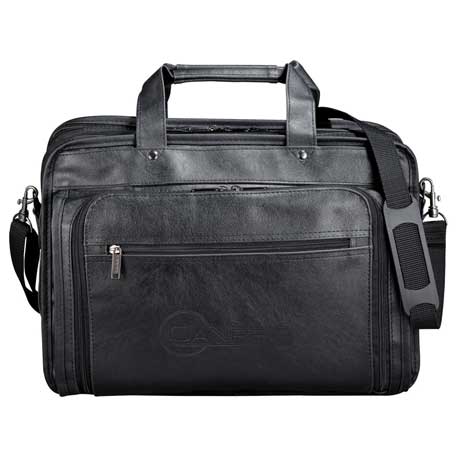 Business Case with zip-down front organizer for all of your work elements. Accordion file dividers for organization. Padded computer pouch (holds a 17″ laptop). Detachable, adjustable shoulder strap.