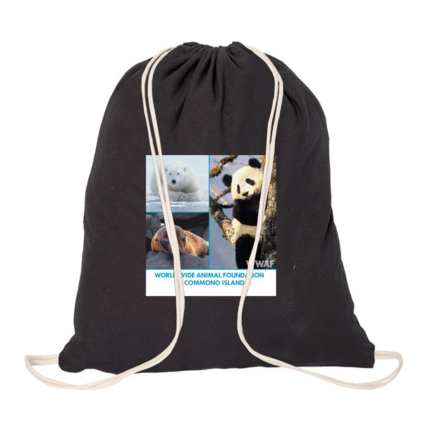 14” W x 17” H • 5.5 ounce Cotton • Natural coloured double cords that act as drawstring closure and straps for backpack • Metallized reinforced grommets SP PP PS – 8” W x 8” H (front/back)