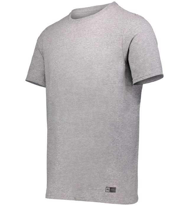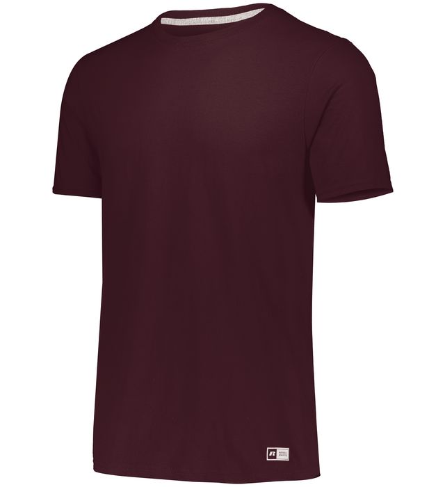 The Russell Athletic® Essential Tee delivers the comfort, style, and performance to fit your active lifestyle. This short sleeve crewneck T-shirt will keep you dry as you sweat, making it easy to transition from work to workout. This tee features moisture-wicking fabric, odor protection, UPF 30+ protection, and soft spun yarn making this tee extra comfortable. It offers the comfort of cotton combined with the benefits of performance.