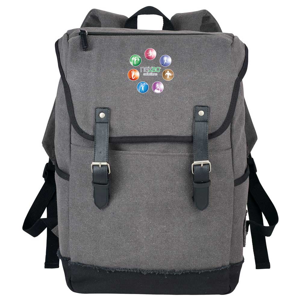 The Field & Co.® Hudson 15″ Computer Backpack is part of a collection that has a gritty, urban look and feel with a modern functional design. Spacious open main compartment snaps shut with custom Field & Co. rivets. Exterior slash pockets allow you to store your water bottle or anything else you need quick access to. Black and white micro gingham print on the interior adds a stylish detail while the padded laptop compartment will keep your 15.6 inch computer safe.