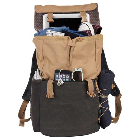 The Field & Co.® Venture 15″ Computer Backpack is designed for the individuals who crave adventure; who believe anything is possible. The desire to travel comes from a craving of adventure. This series is for the start of a new adventure, one that will carry new memories into the future. Features a main compartment with a laptop and tablet sleeve, as well as interior mesh pockets, a top drawstring closure with a top flap that clips on the front and a lower front pocket for additional items. There’s also side water bottle pockets, a side drawstring pocket and padded rear shoulder straps.