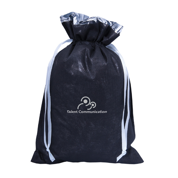 9.75” W x 14” H • Non woven 50 gram lightweight Polypropylene and Aluminum Foil • Gift bag with drawstring closure • Heat-sealed seams • Silver aluminum foil liner • The foil shines through the material giving an elegant two-tone lookSP 1C – 5” W x 5” H (front/back)