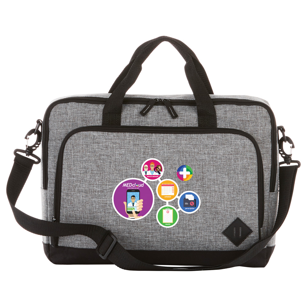 Top opening with padded laptop compartment. Front pocket with organization. Removable adjustable shoulder strap. Top grab handles. Disclaimer: There may be minor variations in color of the actual product due to the nature of the fabric dyes, weaves and printing.