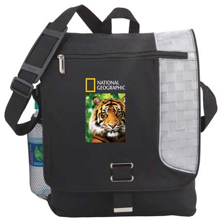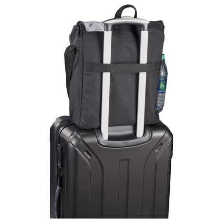 Vertical style messenger holds 15″ laptop and iPad or other tablet device. Organization under the flap holds pens, business cards and phone. Side mesh pocket and trolley pass-through.