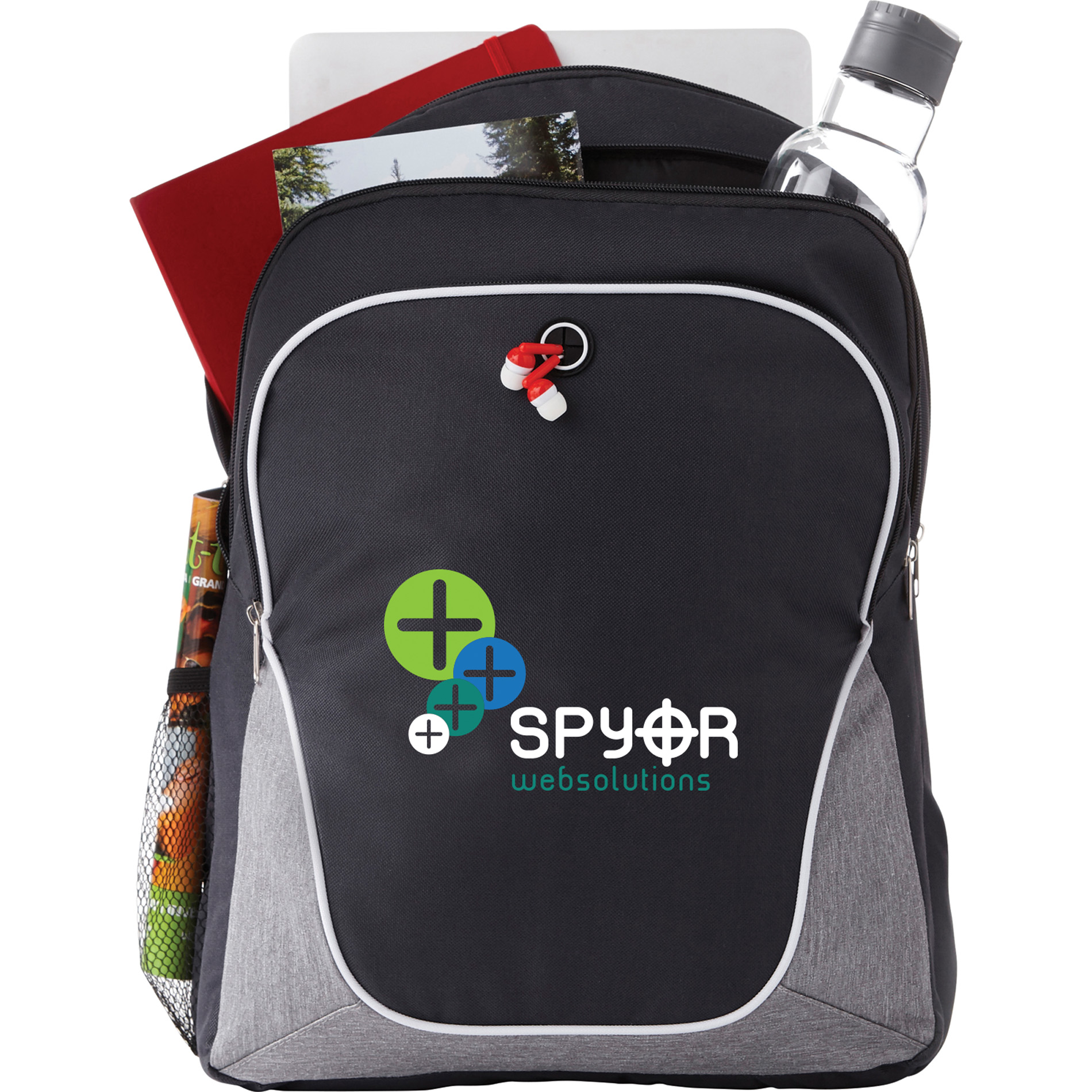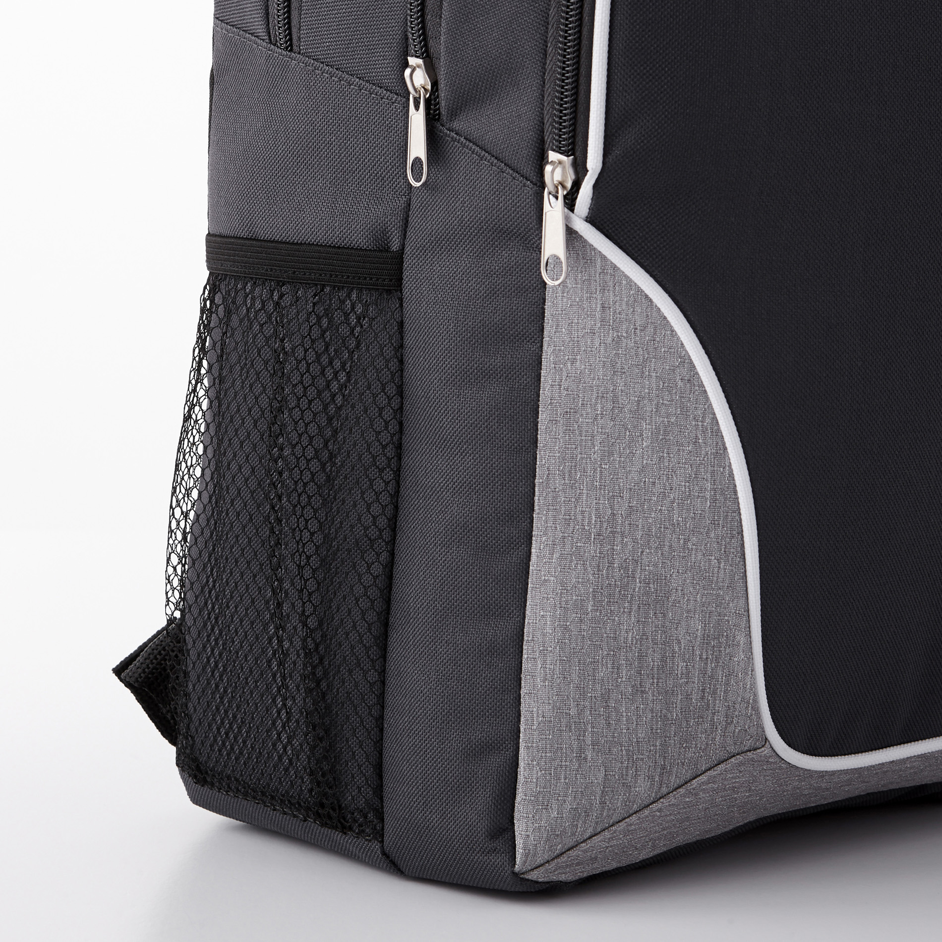The Triple 15″ Computer Backpack features three large zippered compartments, plus a front compartment that offers an organizer panel and an ear bud port, plus a 15 inch padded laptop sleeve and graphite accents.