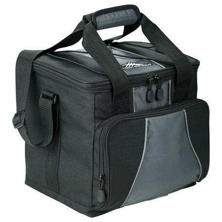 With quality materials and construction, this High Sierra® cooler is the perfect piece for camping, hiking or other outdoor excursions and events. Made of ripstop polyesters and 420d dobbys, this cooler is sure to last through your next adventure. Zippered main compartment holds up to 18 cans. Large zippered front pocket. Bungee cord for maximum storage on top. Dual-carry handle with padded wrap. Adjustable shoulder strap. Insulated PEVA lining. Embroidered High Sierra® branding and molded zipper pulls.
