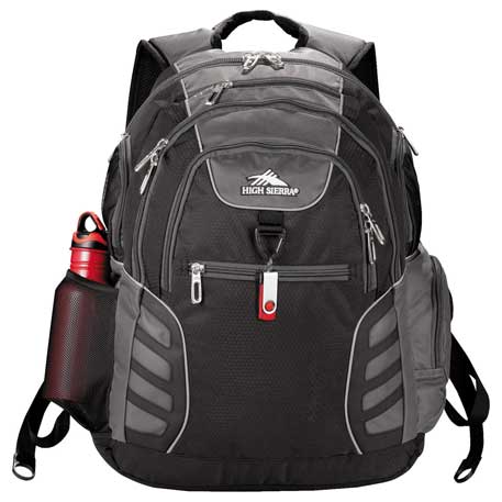 The High Sierra® Big Wig 17″ Computer Backpack is a large, multi-compartment design that features a Cushion Zone™ padded computer compartment with a frame sheet that protects most 17 inch laptops. Comes with an organizer compartment with a mesh pocket, pen pockets and key fob, plus multiple side pockets and an easy-access media player pocket with a headphone port. Front zippered accessory pocket. Yoke-style, S-shaped Vapel™ mesh padded shoulder straps with Collar Comfort™ edge and integrated media/cell phone pocket. Attach extra gear with the convenient triangle clip. Comfortable Vapel™ mesh padded back panel. Includes lifetime warranty.