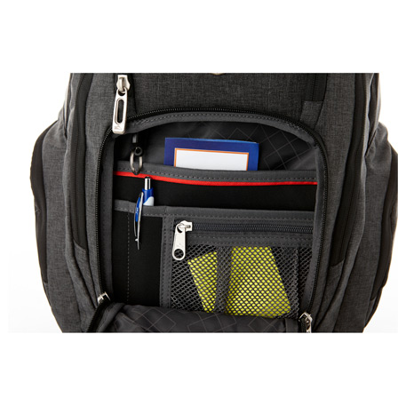 The High Sierra® Business 17″ Computer Backpack features a padded, lined and dedicated compartment protects your 17 inch laptop. Main compartment has huge capacity and includes a padded and dedicated tablet sleeve, a lined valuables pocket and a front zippered compartment with an organizational panel and a key fob. Side zippered pockets. Mesh water bottle pocket. Airflow™ mesh padded back panel with trolley pass through. Padded and adjustable should straps, cable grab handle. High Sierra branding. Lifetime warranty included.