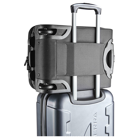 The High Sierra Underseat Luggage is designed to fit under an airplane seat. The piece includes a front pocket organizer, top quick access pocket, interior mesh pocket and a side water bottle pocket. The interior PVC toiletry pocket keeps your liquids safe. With a multi stage trolley handle and back side trolley strap, this bag is perfect for travel.