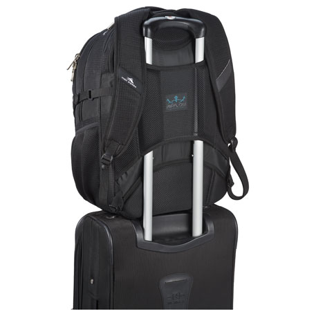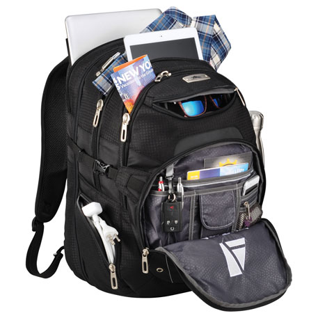 The High Sierra TSA 15″ Computer XBT Deluxe Backpack features a dedicated and padded 15 inch computer compartment to protect your computer while traveling. The TSA compartment unfolds to lay flat on the x-ray belt to increase your speed through security. Additional zippered pockets are featured on the interior wall for charging cables, power banks, etc. There is a large zippered main compartment and a crush proof easy access top zippered compartment. Large front organizer pocket for quick-access items and deluxe organization. Built-in carabiner clip. Side zippered pocket and mesh pocket. Adjustable side compression straps to control expansion of bag. Airflow ™ padded back panel with trolley pass-through. Adjustable shoulder straps.