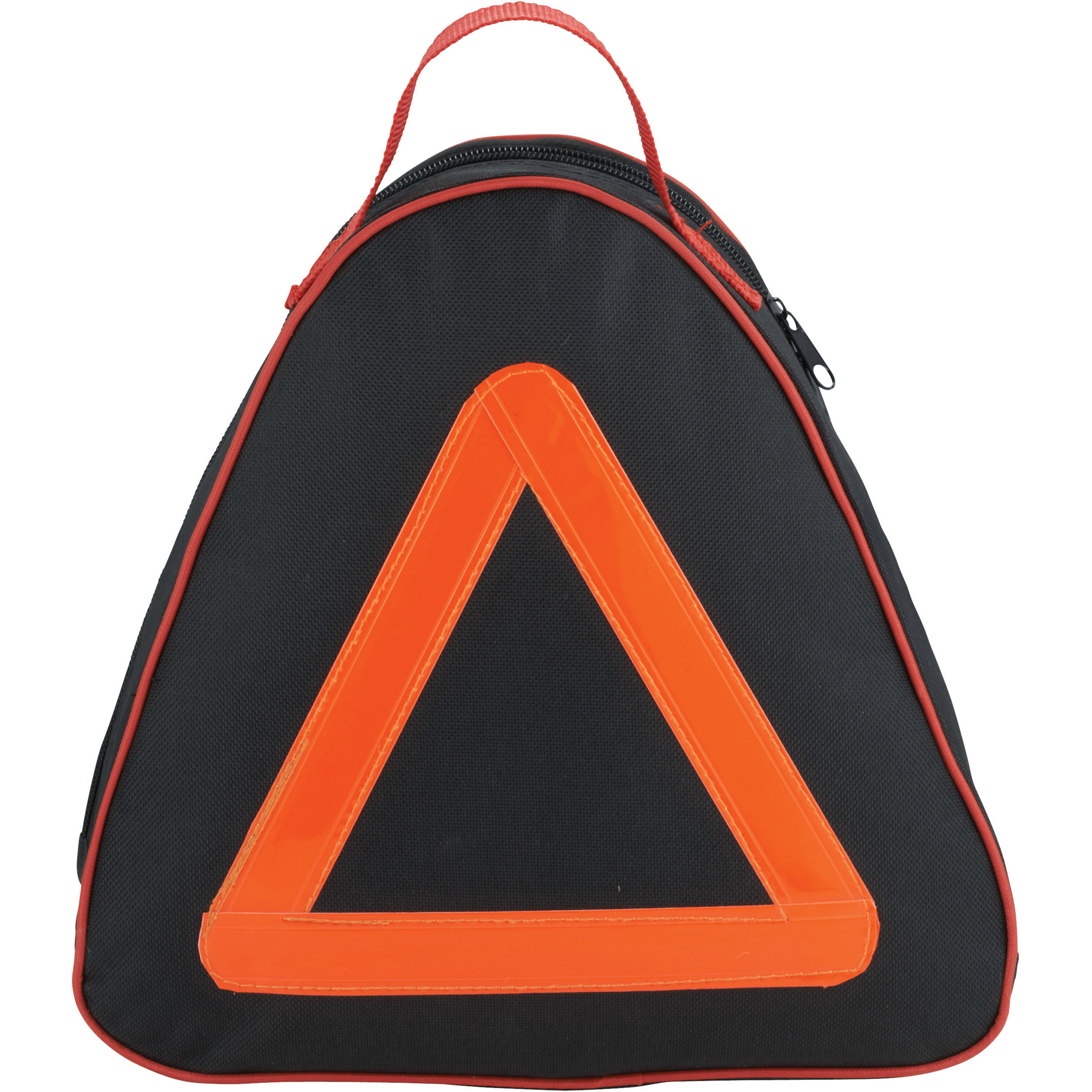 Handle all roadside emergencies with this 9 piece highway gift set. The durable 600D reflective carrying case includes: collapsible funnel, 10 gauge jumper cables, warning triangle, gas siphon, blanket, 50 PSI tire gauge, one pair of rubber grip gloves and flashlight with 2 AA batteries. Carrying case can be used as emergency reflective warning strip.