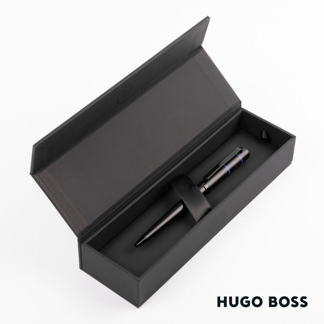 The Ribbon Matrix Pen is a combination of the Ribbon & Gear Matrix lines from HUGO BOSS. It is a simple yet striking pen with a black finish and fine colored lines that give it a modern and youthful feel. Delivered in a beautiful branded executive gift box.