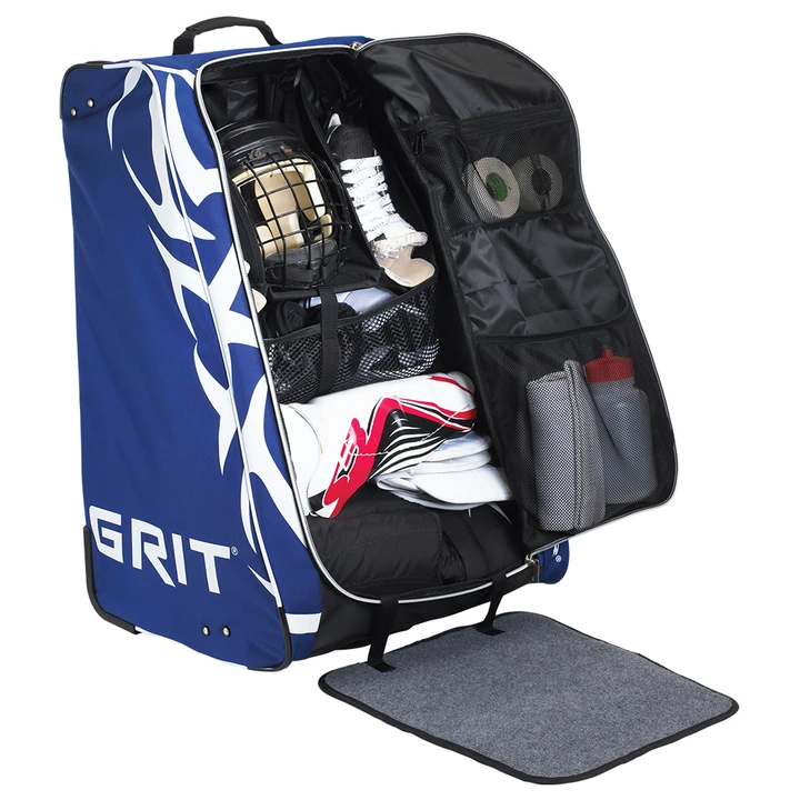 The upright design along with the shelf system, door pockets and removable mesh bag keep you organized so you will not forget anything at home or at the arena.