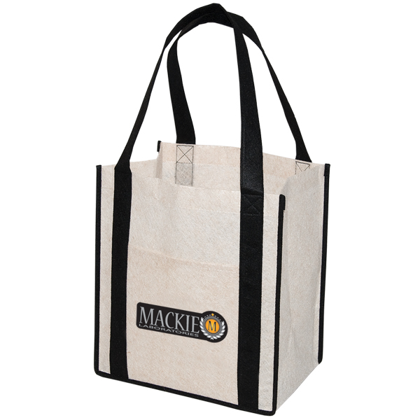 12” W x 13” H x 8” D • Mixture of non woven 100 gram polypropylene and Jute • Front slash pocket• Removable self-material bottom base • Two self-material carry handles • Strong, lightweight and environmentally-friendly • Great sized durable carry all bag SP PP PS – 4.5” W x 5” H (front pocket) SP PP PS – 4.5”W x 6” H (back)