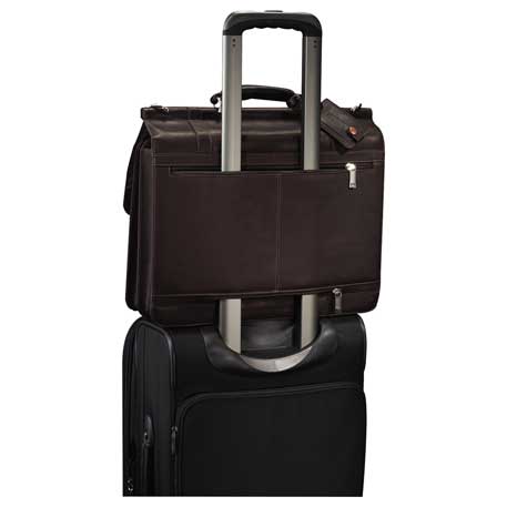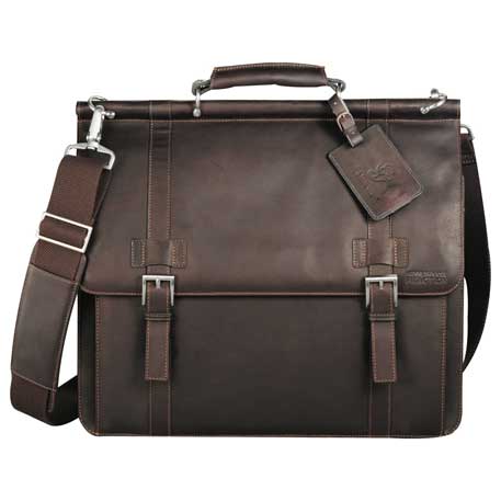 Large main compartment includes padded computer pouch with hook and loop closure that holds 15.6″ laptop. Dual main compartment includes iPad/tablet pocket, iPhone/smartphone holder, elastic pen loops. Front pocket organizer includes media holder, iPhone/smartphone pocket, Hook and loop valuables pocket, business card holders and mesh I.D. window. Rear zippered trolley pass-through. Padded removable shoulder strap. Includes genuine full grain leather identification tag. Includes signature Kenneth Cole® hardware and lining.
