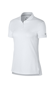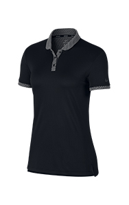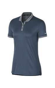 100% polyester. Dri-FIT. Standard fi t | 8.4 oz Swoosh on left sleeve. Peter Pan collar. 3-button placket. Drop-tail hem with hem vents. Pattern design on collar, placket and sleeve hems.