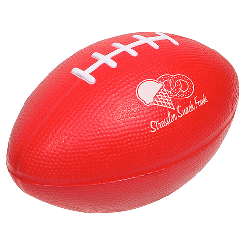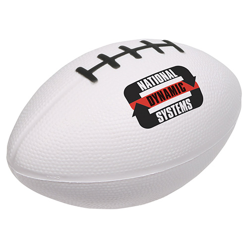 - 5″ Football shaped polyurethane stress reliever . White stress relievers may discolor over time. Care instructions are provided with your shipment.