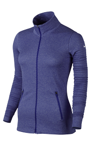 8.4 oz Body: 100% polyester circular knit jacquard, Dri-Fit. Pocket: 100% polyester plain warp knit. Swoosh on left sleeve. Full-zip design for adjustable coverage. Nike Sphere fabric to keep you warm.