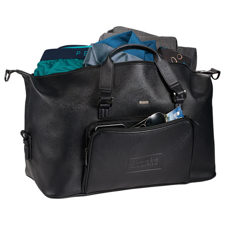 High quality vinyl material. large front pocket doe decorating with organization. Large main compartment with zippered pocket. Removable adjustable shoulder strap. Top grab handle. Sleek and subtle Luxe branding.