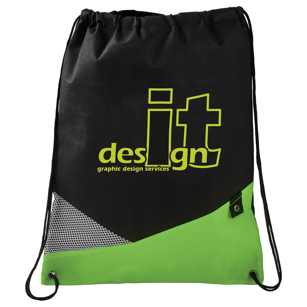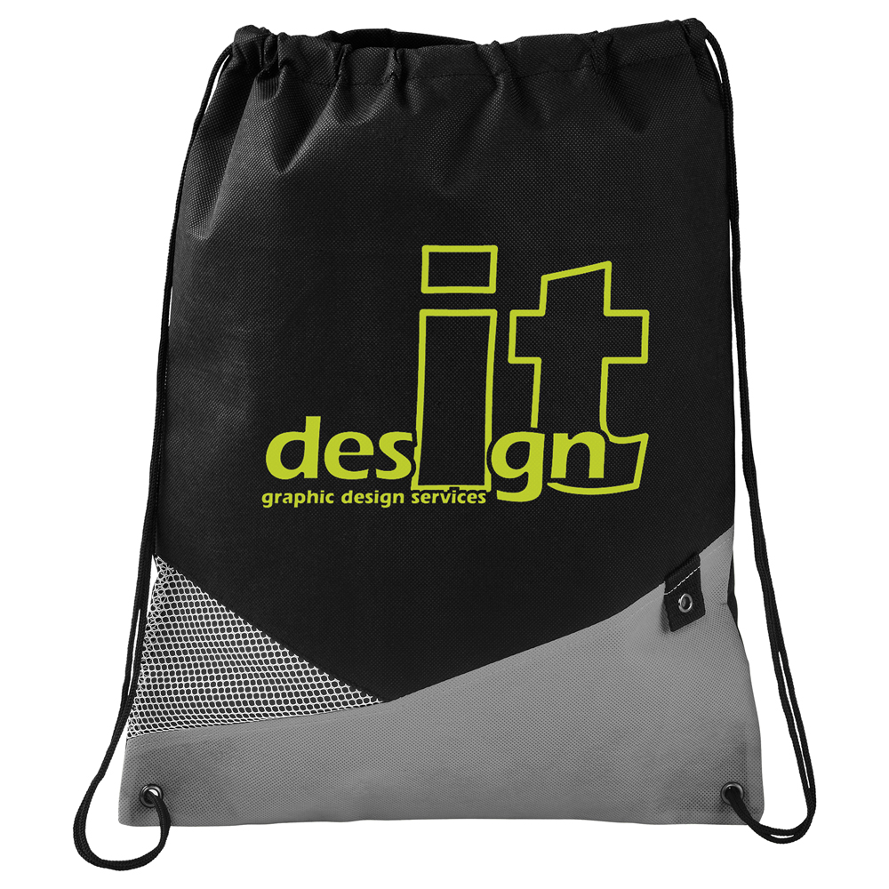 The Mesh Non-Woven Drawstring Bag features stylish mesh accents, an open main compartment with cinching rope closure and a handy key fob for all your keys.