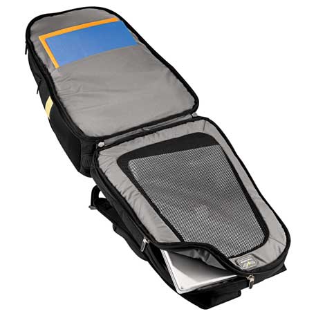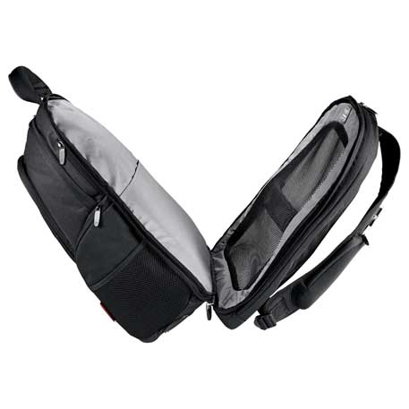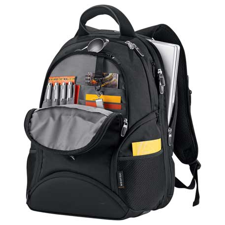 The Neotec Fusion TSA 15″ Computer Backpack features a laptop-only section folds flat on the X-ray belt to increase your speed through security. Side-entry laptop compartment holds most 15 inch laptops. Zippered main compartment with interior file dividers and accessory pockets. Top zippered valuables pocket and side quick-access pocket. Zippered front pocket with organization. Snap-back USB pocket. Two side zippered media pockets with layered mesh pockets. Includes a lower pocket with hard EVA shell to protect small electronics, a media pocket on straps with a custom molded, anvil cord wrap and a padded handle and adjustable padded shoulder straps. Also features an integrated rear trolley handle.