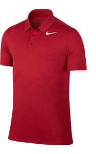 6.3 oz 100% polyester, Dri-Fit. Standard fit. Swoosh on left chest. 3 button placket. Dry fabric for added moisture-wicking.