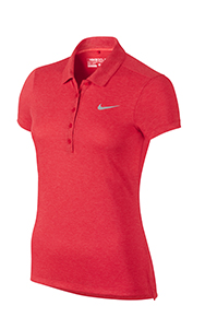 79% Polyester / 21% Spandex, 6oz. Circular knit mesh for ultimate stretch and moisture management. 5 button placket, set-in sleeve and dropped hem with a side vent for added detail. All-over heather.