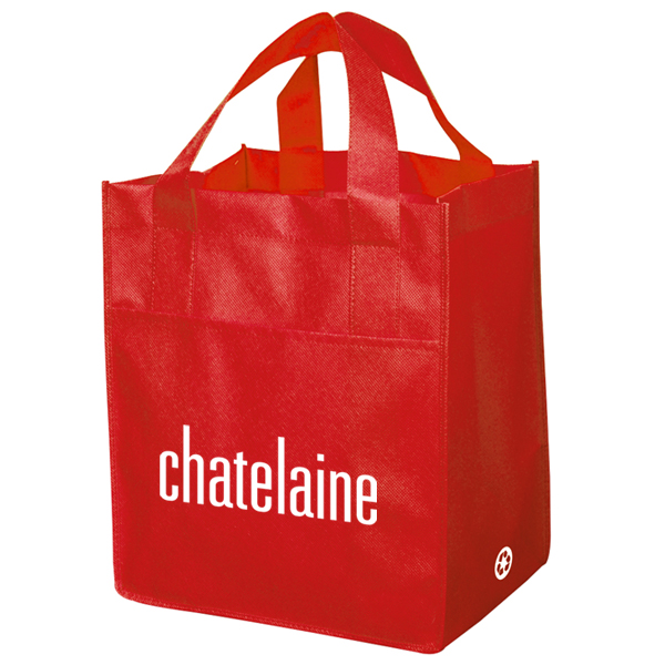 11.75″ W x 13.75″ H X 8.75″ D • Non woven recycled 90 gram polypropylene • Large front slash pocket • Two self-material carry handles • Great sized and durable carry-all bag • This one bag replaces two standard sized plastic bags • Removable bottom baseSP PP PS – 7″ W x 6″ H (front pocket) SP PP PS – 4″ W x 6″ H (back) SP PP PS – 4.5″ W x 7″ H (gusset)