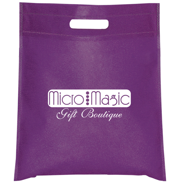 14″ W x 16″ H • Non woven 65 gram polypropylene • Strong reinforced heat sealed seams • Holds up to 5 lbs. (2.2 kgs.) • Convenient cut-out handle • A durable alternative to gift wrapping those smaller items • Use at company events, tradeshows and for corporate gifts • A lightweight alternative to use in retail stores, as handouts and to take the place of smaller plastic shopping bags • Also available as a custom import option (minimum 30,000 pieces) contact your account manager for pricing SP 2C PP PS – 8” W x 8” H (front/back) TR – 8” x 5.5” (front/back) Maximum one colour imprint on black bags